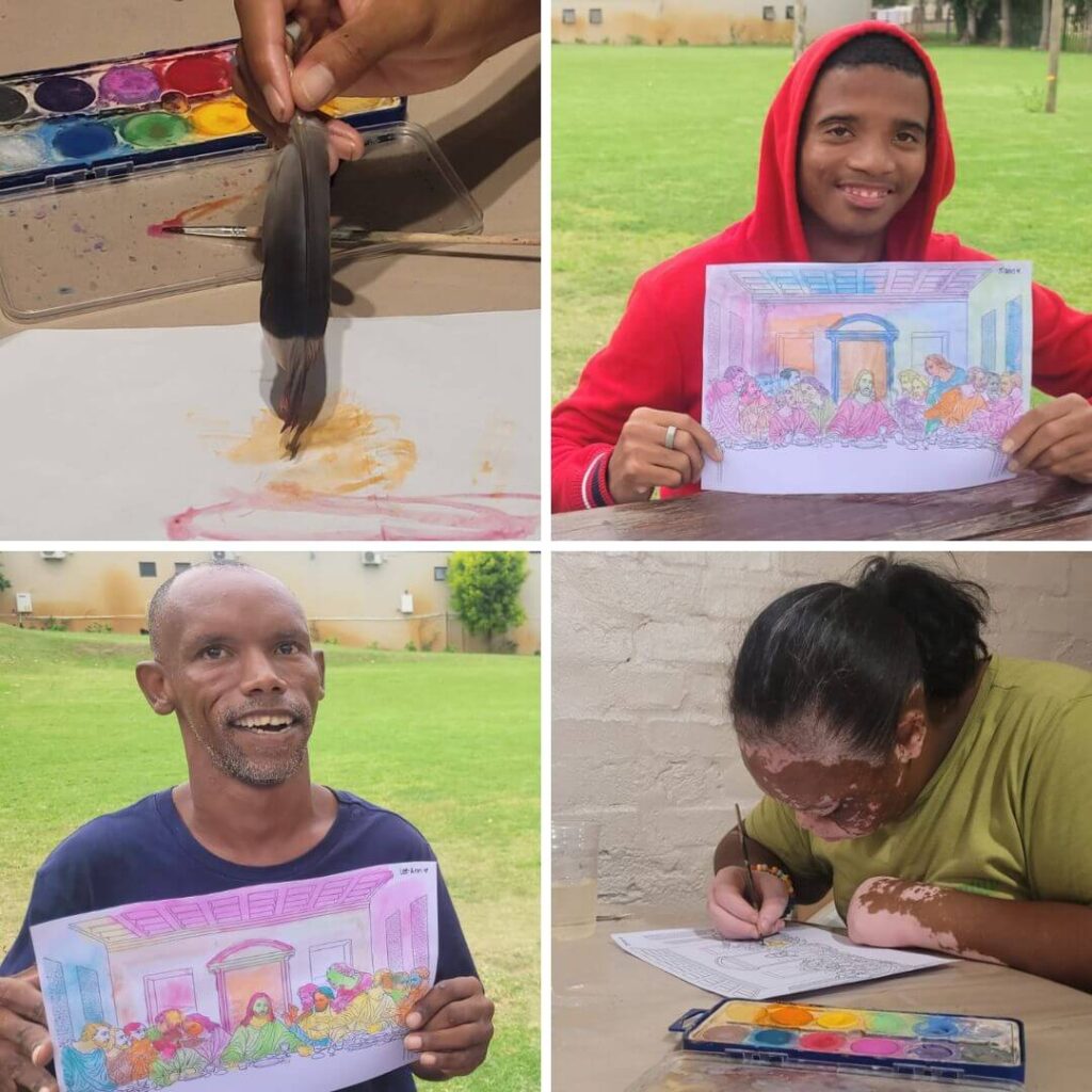 After the Avodah group finished acting out the Last Supper, we moved into a creative activity that helped bring the lesson to life in a practical way. Together, we went outside to collect feathers, which we then used as a gentle introduction to watercolour painting.